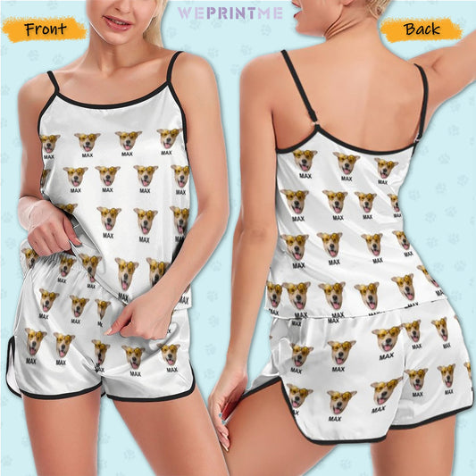 Custom Pet Face and Name Women's Satin Suspender Pajama Set