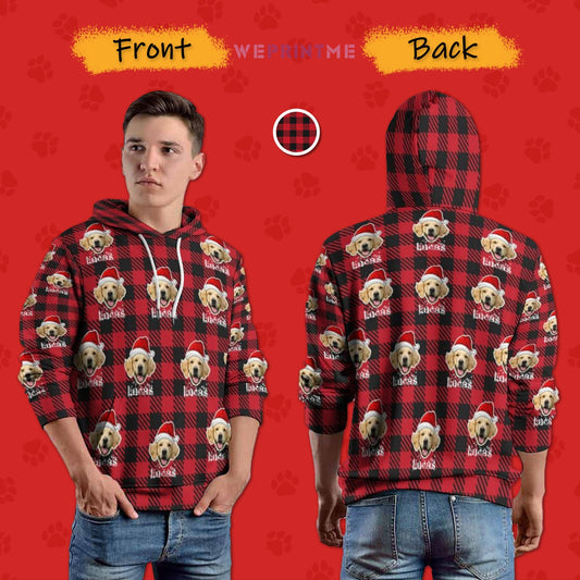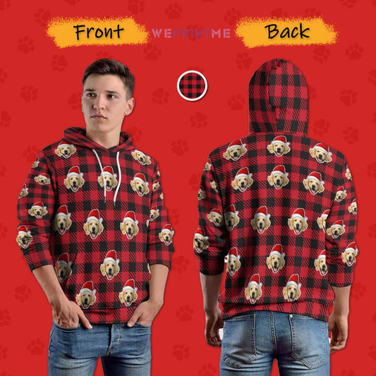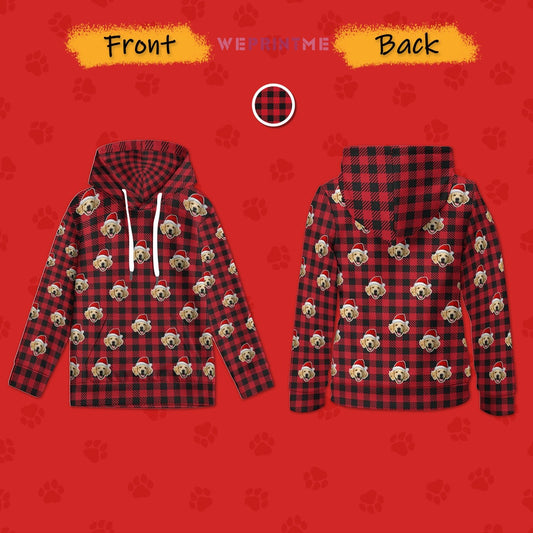 Custom Pet Face Hoodies Santa Red Plaid Hoodies