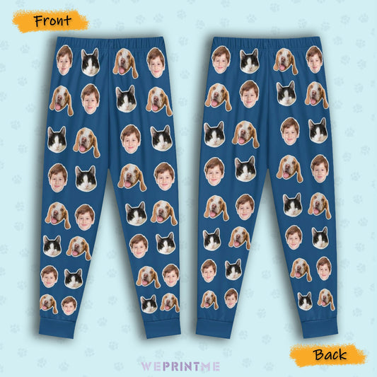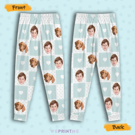 Custom Pet Kids Pants Kid and Pets Face Pajama Pants