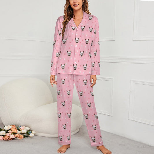 Custom Pet Face Paws V Neck Pajama Set for Women