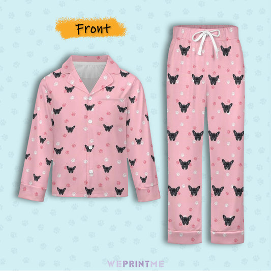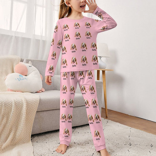 Custom Pet Face Paws V Neck Pajama Set for Kids