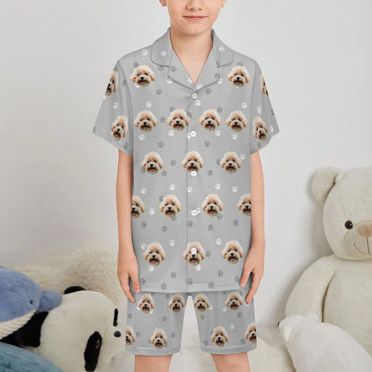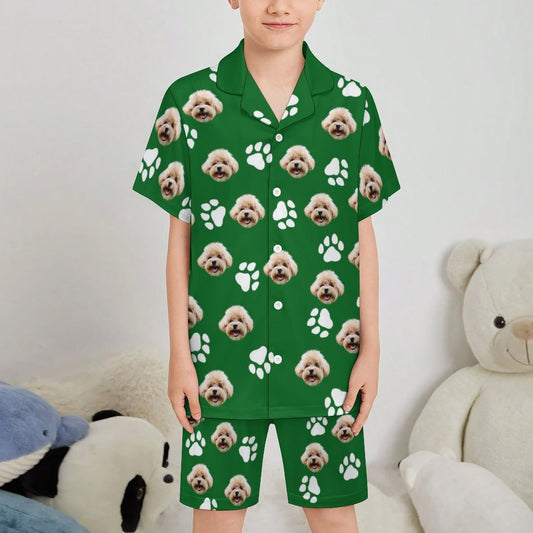 Custom Pet Face Pet and Paws Kids Short Pajama Set
