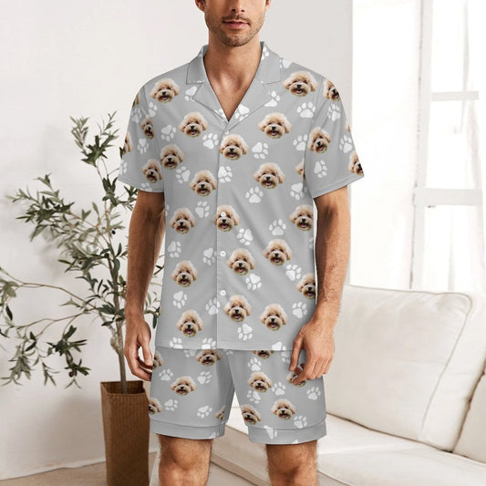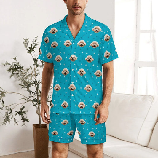 Custom Pet Face Pet and Paws Men's Short Pajama Set