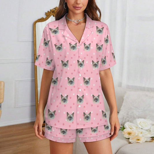 Personalized Pet Pajamas Pink Paws Women's Short Sleeve Pajama Set