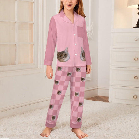 Custom Pet Face Plaid Button-Down Kids Pajama Set