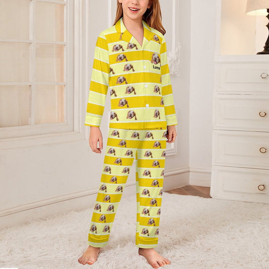 Custom Pet Face Stripe Button-Down Kids Pajama Set