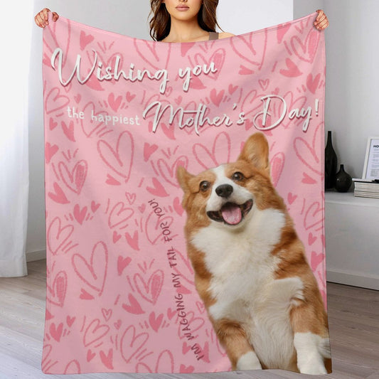 Custom Pet Photo Happy Mother's Day Fleece Blanket