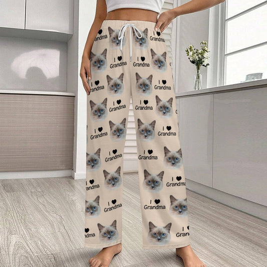 Personalized Pet Face Pajama Pants Love Grandparent for Women