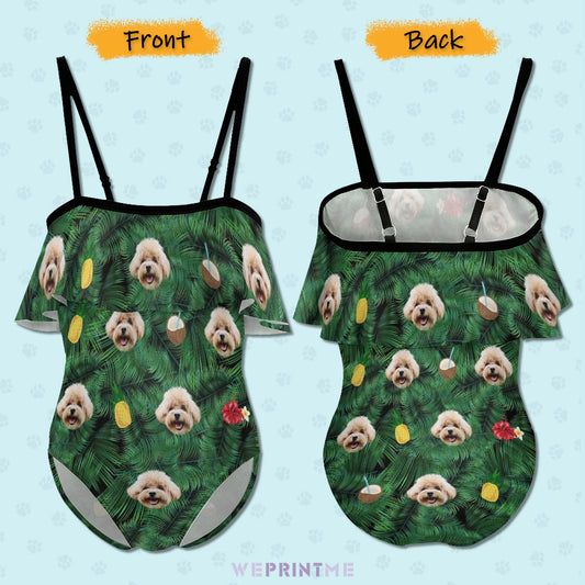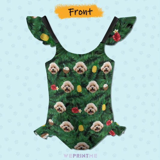 Custom Pet Face Summer Children's Ruffled One-Piece Swimsuit