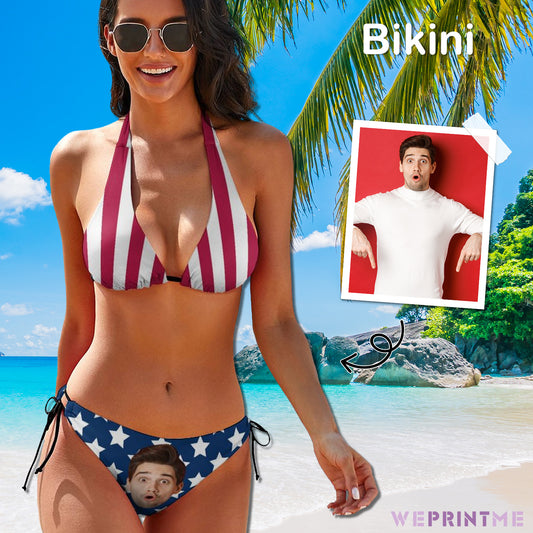 Custom Pet Face Flag Girls Strappy Swimsuit