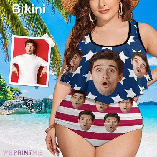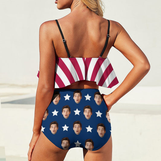 Custom Face Flag Ruffle Bikini