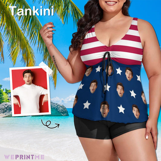 Custom Face Flag Plus Size Tankini