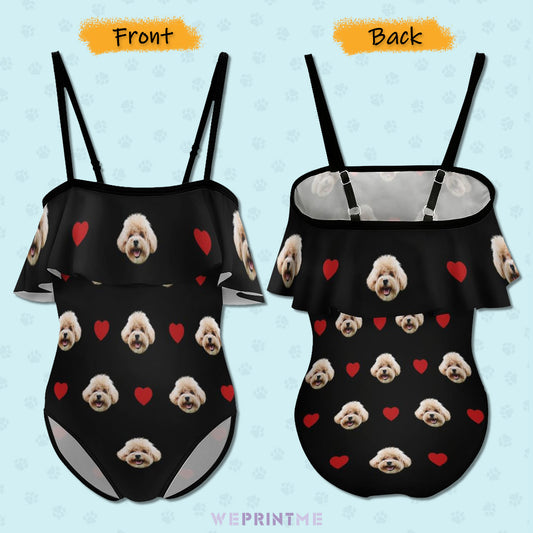 Custom Pet Face Heart Girls Swimwear Matching Pet Bandana