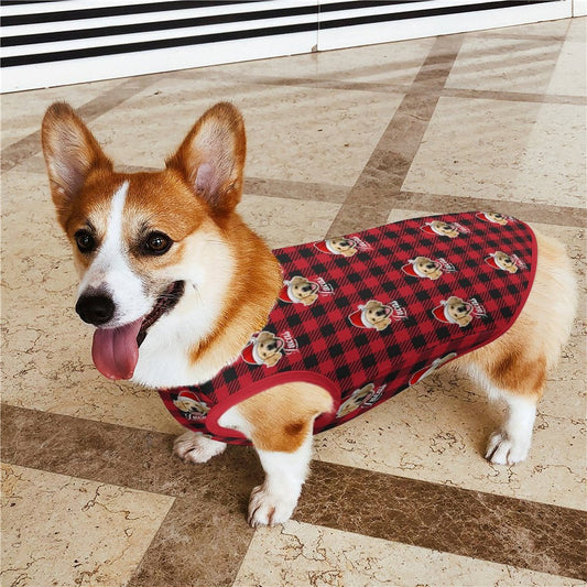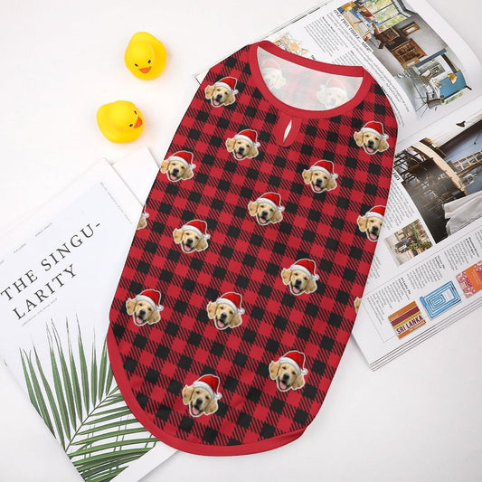 Custom Pet Face Pet Vest Santa Red Plaid Dog Vest